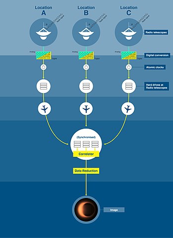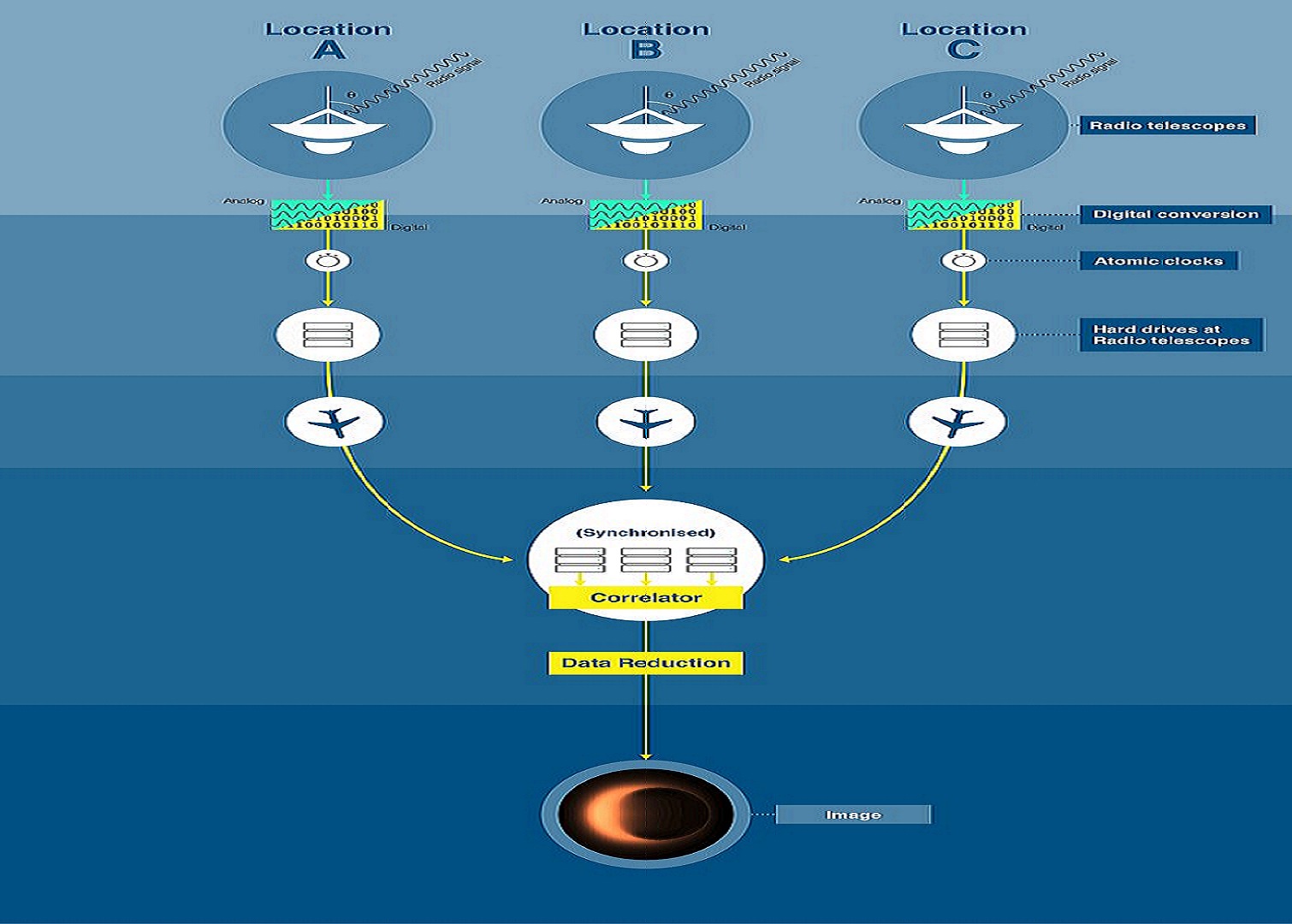 The matters near the event horizon of the blackwhole gets heated up to millions of degrees of temperature emitting radio waves and x-rays. This type of telescopes were installed in various eight part of Earth,collectively forming a telescope known as Event Horizon Telescope. These telescopes were synchronized with atomic clock which were turned on at same time pointed towards M87*. These telescopes received and collected the radio waves emitted from the black whole. After the data were collected in laboratories special algorithm inbuilt in the super computers rendered the image we have now.